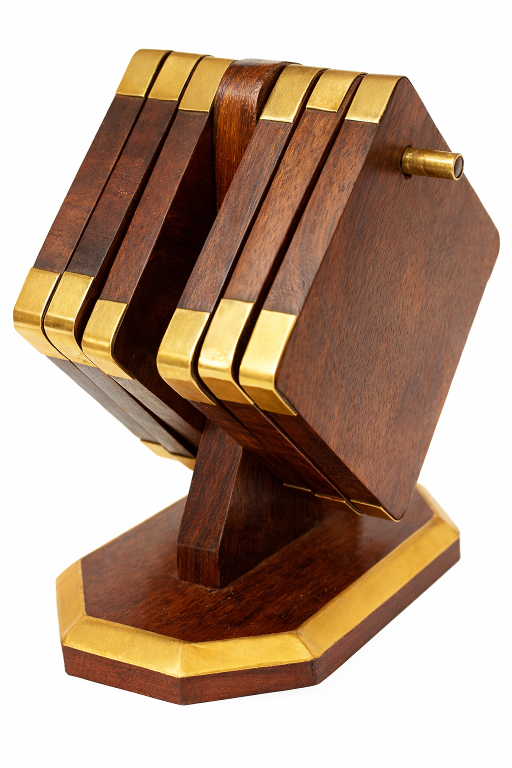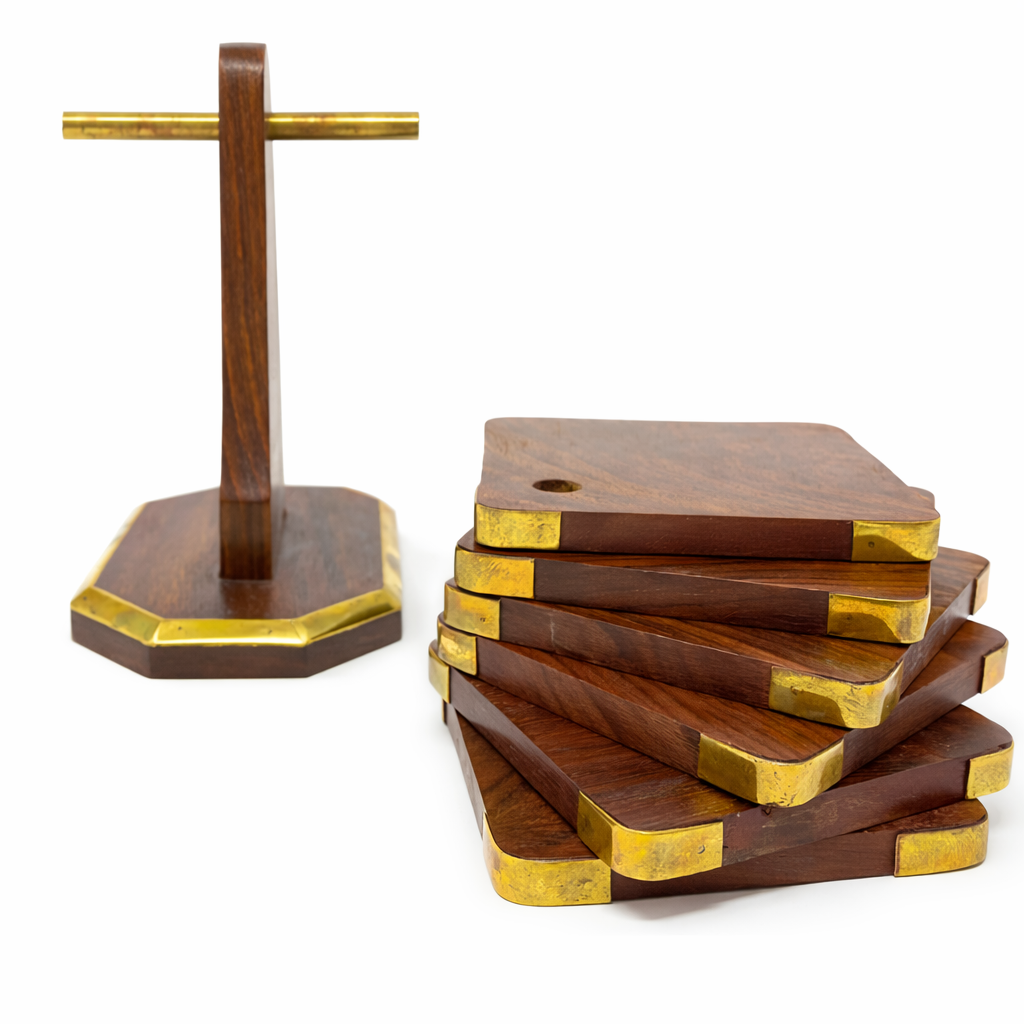 Enhance your table décor while protecting surfaces with this beautifully handcrafted square wooden coaster set (pack of 6). Designed from high-quality natural wood, these coasters offer durability, elegance, and long-lasting performance. The brass-reinforced corners not only improve durability but also add a premium decorative touch.